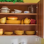 Du hittar strykjärn med strykbräda, plattskärms-TV med satellitkanaler och kabel-TV med video på begäran i rummet. Badlakan, handdukar och hårtork finns här.
